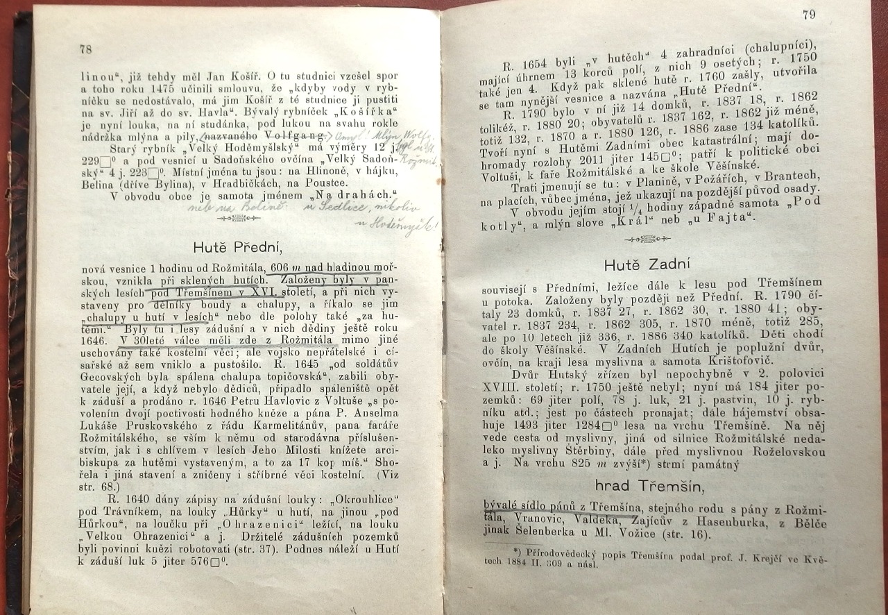 Ze zápisků Slavíkových zejména byly redakcí do knihy zařaděny tyto oddíly: Lesy v starší době, Zvěř lovná v starší době, Rybníky, Hutě skelné a železné, Obecní pozemky a Obecní lesy. Některé oddíly, jako Dějiny starých domů a gruntů, nebylo možno ani při nejlepší vůli sestaviti z neúplných výpisků, ač se o to redakce pokoušela a mnohou hodinu nad nesrozumitelnými poznámkami proseděla.