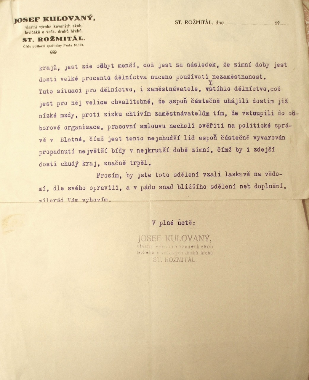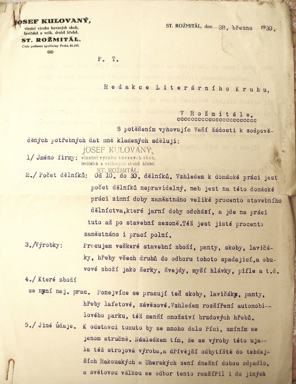O podklady pro knihu oslovil v roce 1930 Literární kruh m. j. rožmitálské podnikatele