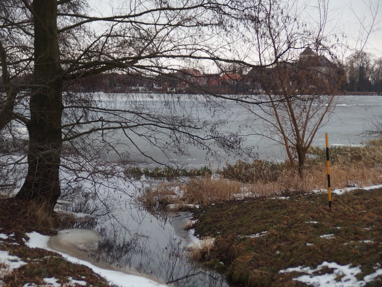 Černá a bílá byla dneska zima ve Starém Rožmitále. Jako dřív černobílá televize, i přes občasné estrádní pořady smutná. Jen ta volavka nad mostem přinesla úsměv...