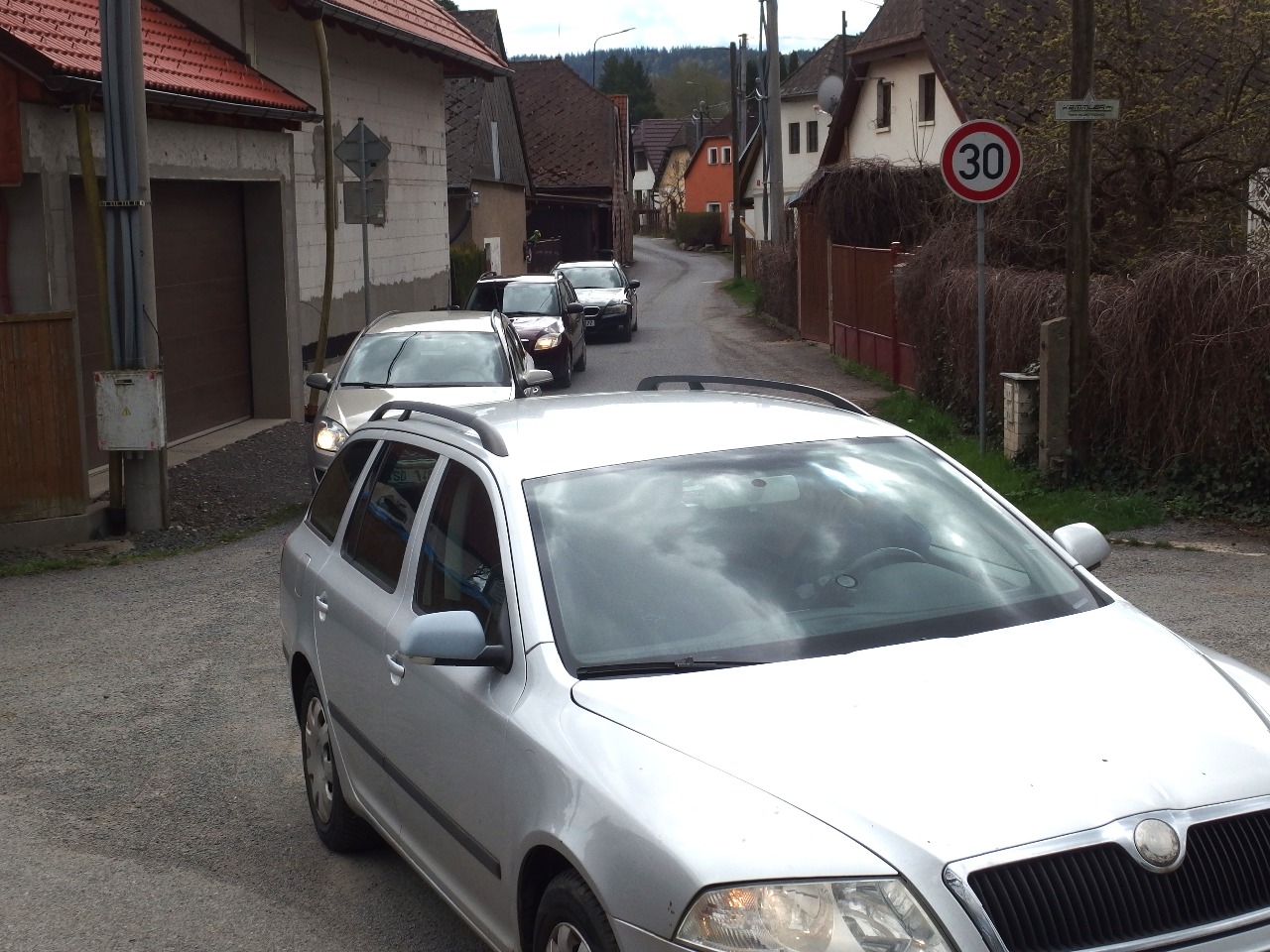 Nakladač a nákladní auto s hlínou si hověly na mostě a před ním se znenadání vytvořila fronta spěchajících zaměstnanců. Sice spěchali, ale i trpělivě čekali. Až jedna řidička vystoupila, třem Nepomuckým domluvila a ti jako správní gentlemani, i když už měli hlínu pomalu z korby náklaďáku všechnu dole, most uvolnili a později práci dodělali.