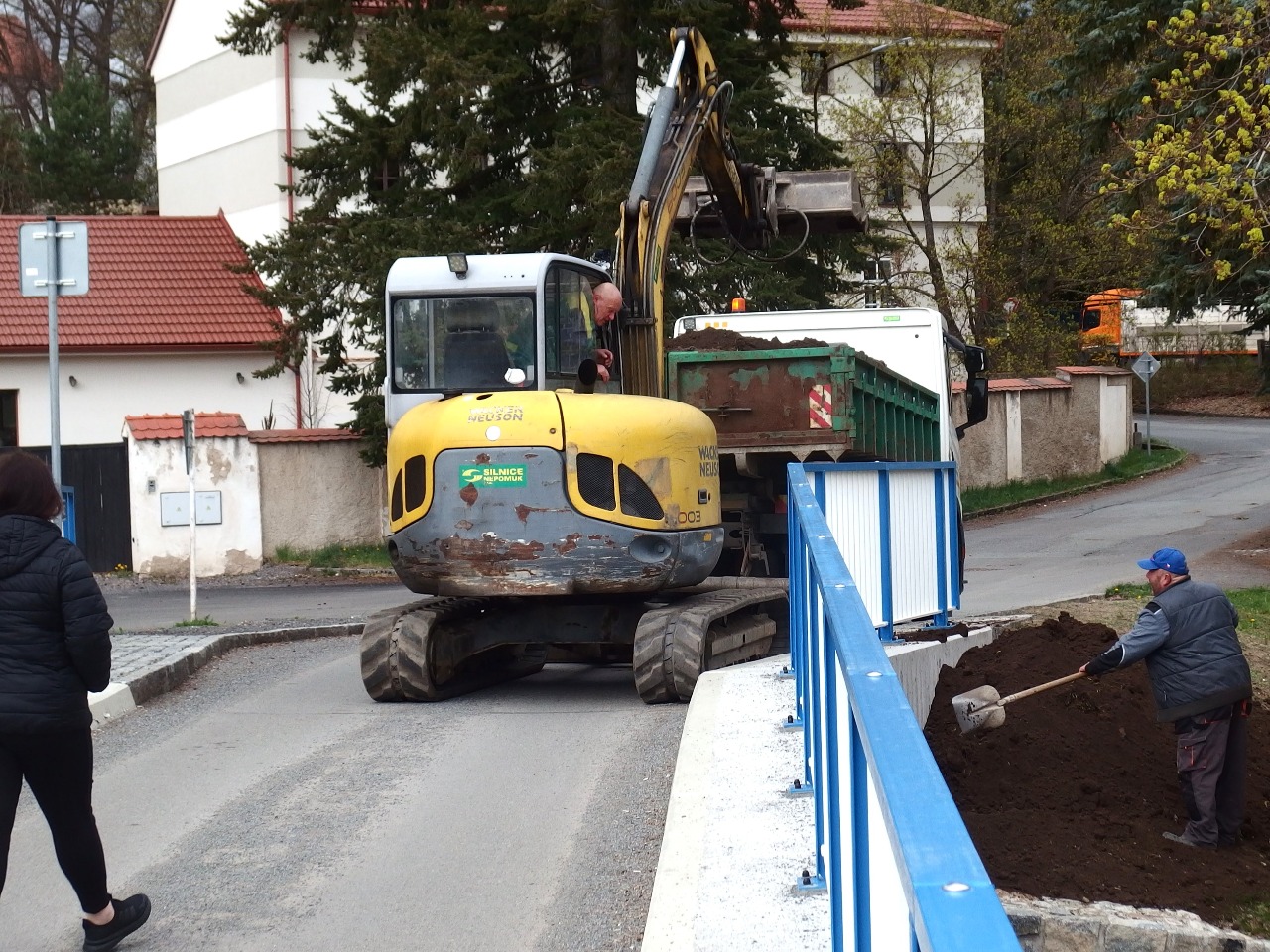 Ke kuriózní situaci došlo včera odpoledne ve Starém Rožmitále. Pracovníci Silnic Nepomuk naváželi zeminu na svah nového mostu jako na potvoru v době, když končila směna u Kemmlera.