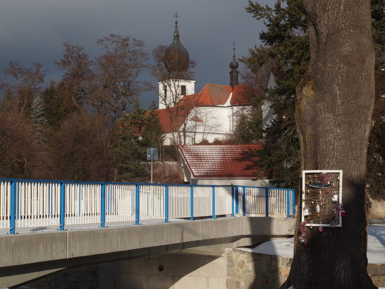 Sluncem zalitý starorožmitálský kostel začátkem letošního roku