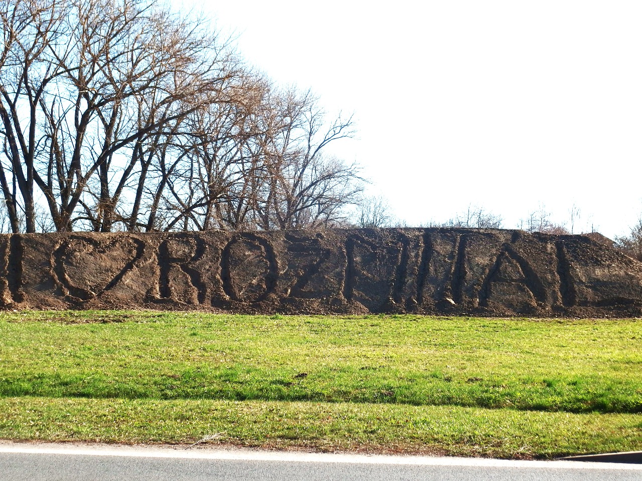 Neznámý tvůrce si dal na kruhovém objezdu u Rožmitálu práci a vytvořil na haldách technických služeb vítací nápis I love Rožmitál. Při jízdě si však sloganu málokdo všimne. Prostě písmena by chtělo ještě vysypat kačírkem nebo pískem. Pak to bude dokonalé!