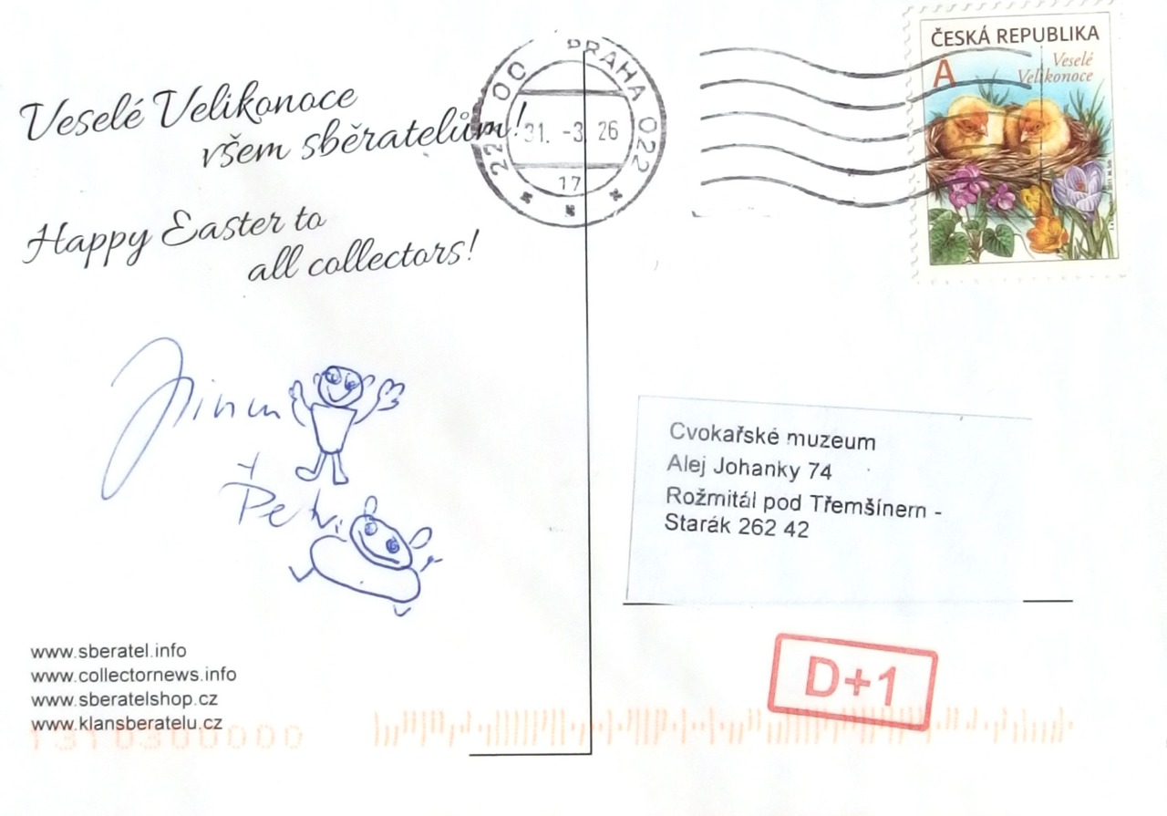 Přesto je v Cvokařském muzeu k mání několik desítek pohlednic muzea, Starého Rožmitálu i města. Nemusíte je však hned posílat a platit předražené poštovné. Přece stačí jako suvenýr z návštěvy.