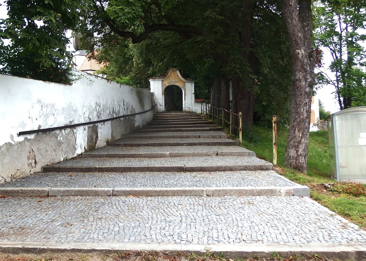 V roce 1882 daly ke starorožmitálské farnosti přifařené obce dohromady peníze a nechaly vybudovat do farního areálu schodiště vedoucí od mlýna ke kostelu a starému hřbitovu. Podle spisovatele R. R. Hofmeistera byly schody zasvěceny magické osmičce, která – je-li naležato – symbolizuje nekonečnost vesmíru, cyklu života, smrti a znovuzrození. Schodiště tedy mělo osm schodů, z nichž každý byl osm kroků dlouhý a osm kroků široký.