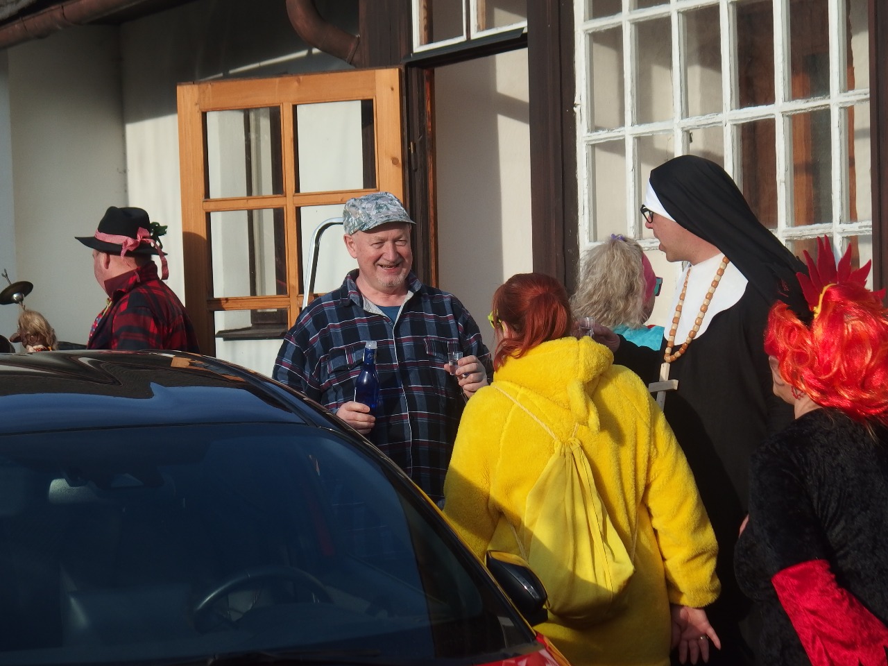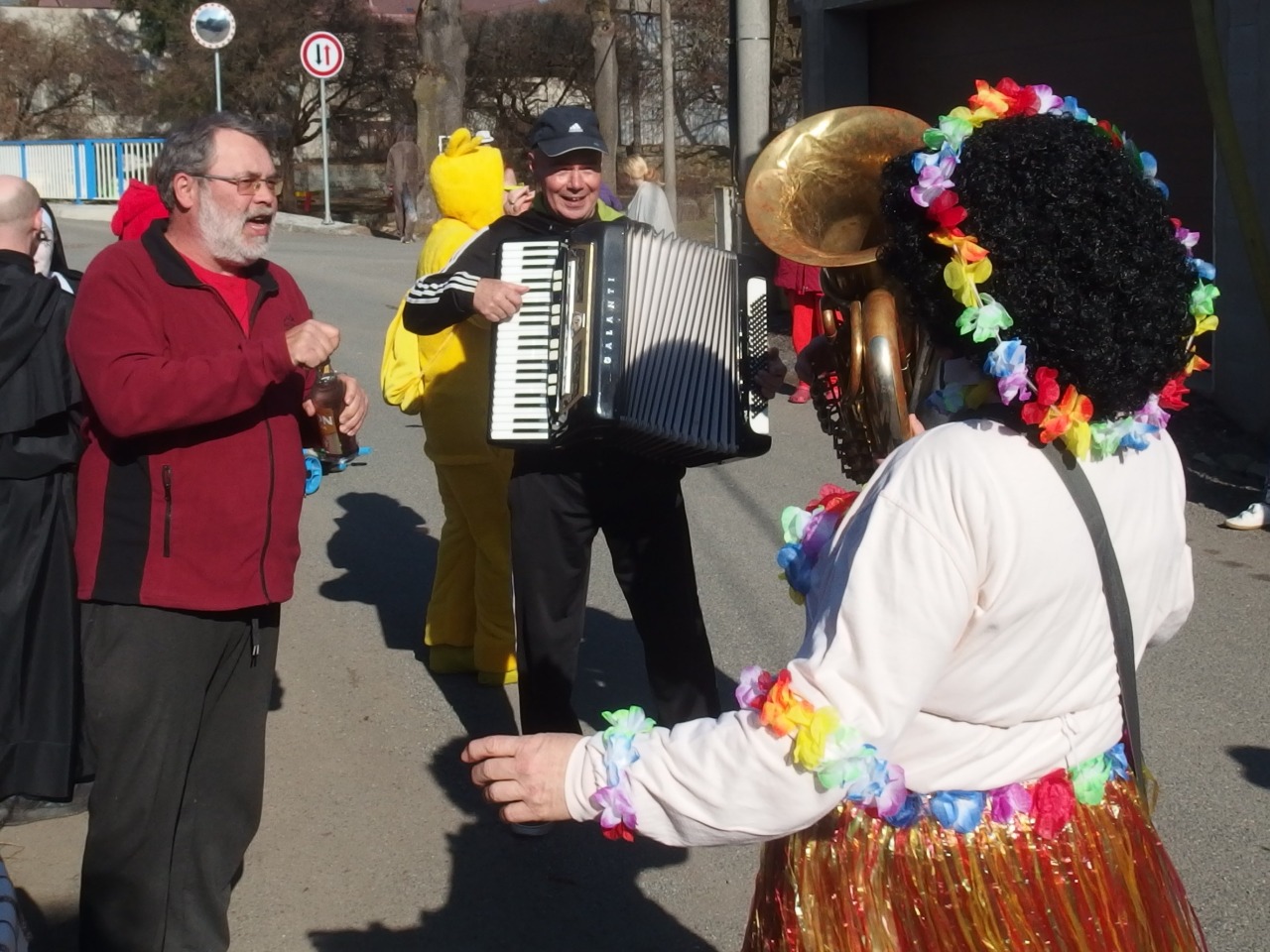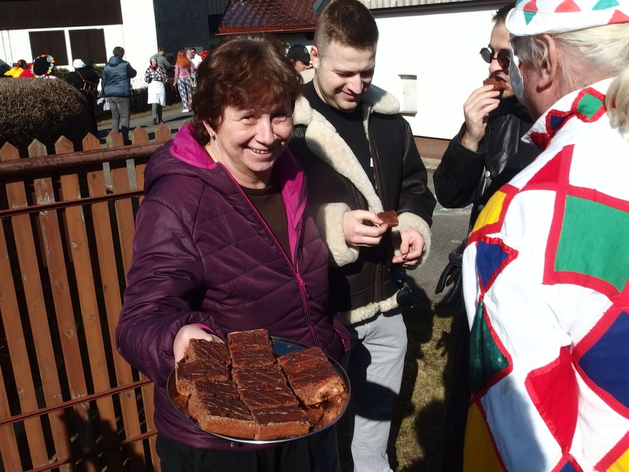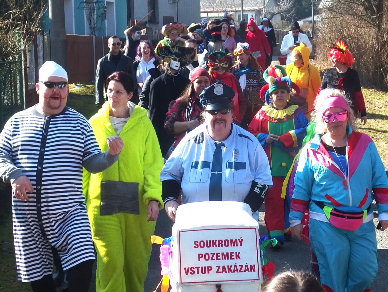 Dneska pošmourno a déšť, ale včera? To bylo azúro - jarních 13 stupňů, bezvětří a slunce! Prostě ideál pro masopustní průvod. Však si také maskovaní účastníci takové počasí zasloužili. V poledne se jich před hospůdkou U Náhonu sešlo na padesát! A pak už se vydali do Ruslandu, pak do Luhu a nakonec do Rybovy ulice a Na Výsluní. Průvod trval pět hodin a maškary při něm našlapaly po Starém Rožmitálu (opravdu měřeno) 8,8 kilometrů!