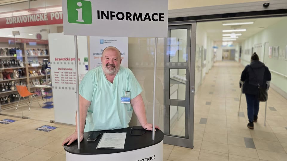 „Na recepci naší nemocnice se můžete obrátit na Michala, informačního pracovníka, který vám pomůže zorientovat se v budovách, najít správnou ordinaci nebo oddělení a poradí s dalšími základními dotazy. Je tu pro vás, aby byla vaše návštěva nemocnice co nejpřehlednější a jednodušší.“